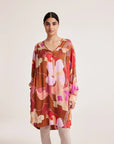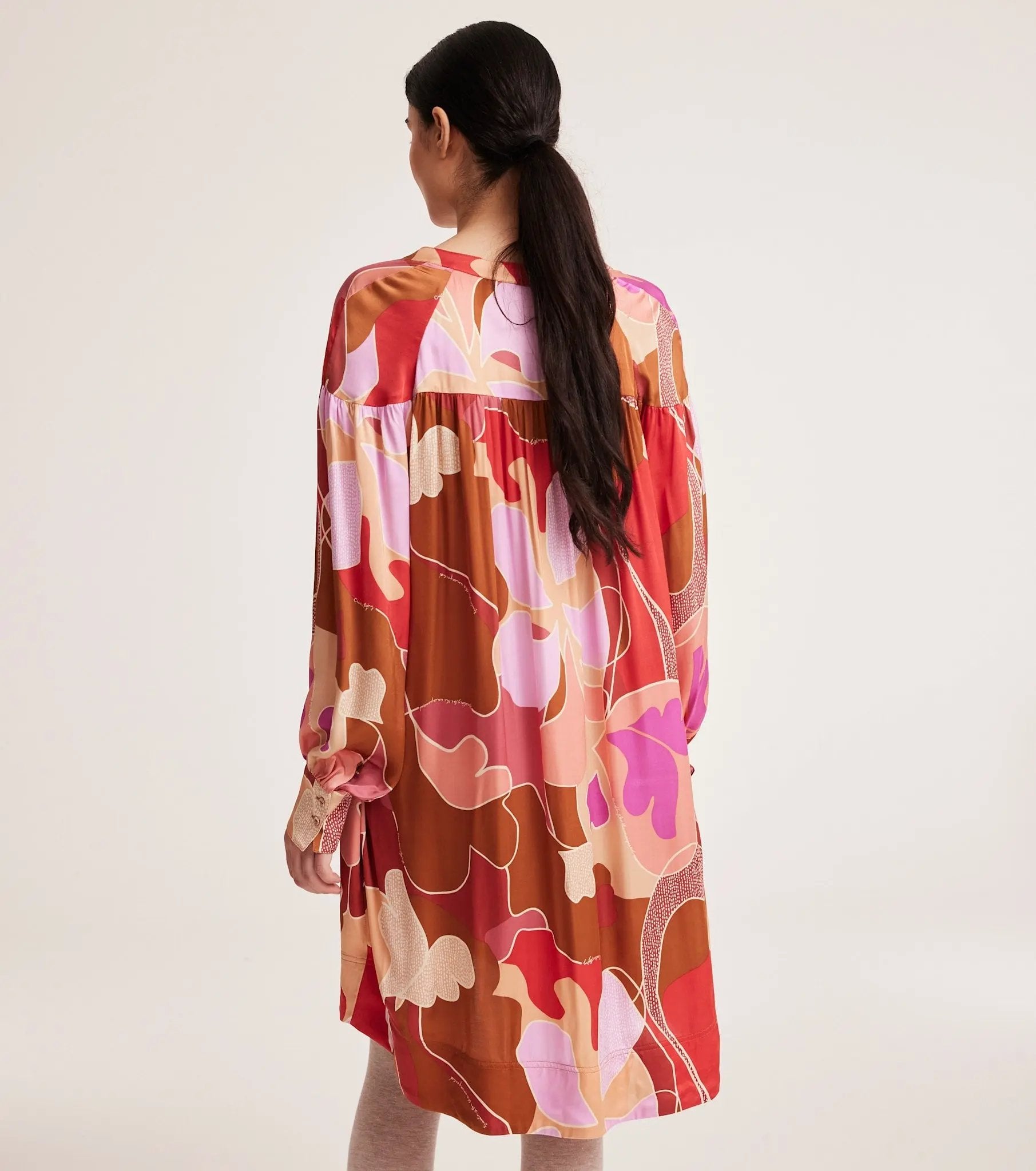 The Odd Molly Amalia Short Dress is a viscose dress with a relaxed fit and a colorful block print. Our in-house print designer has embedded small, dreamy quotes in the art, for example: "Heading for the unexpected" and "Creative flying". Style with a knitted jumper for a more relaxed look or pair with heels and wear on your next night out.